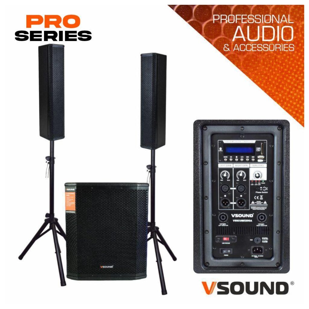 Sistema de Som Bi-Amplificado 12″ USB/SD/BT 1200W VSOUND