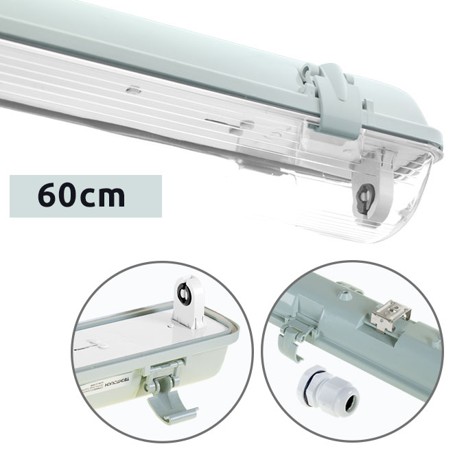 Armadura estanque LINESTA IP65 1xG13 T8 LED 60cm C.65,6xL.8,0xAlt.9,0cm Cinzento