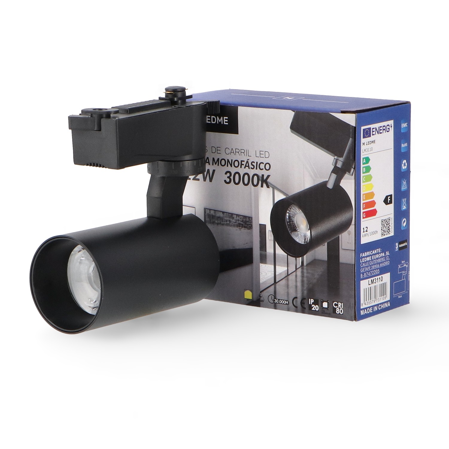Foco LED para calha Preto Berna 12W Monofásico – DSC 6000K