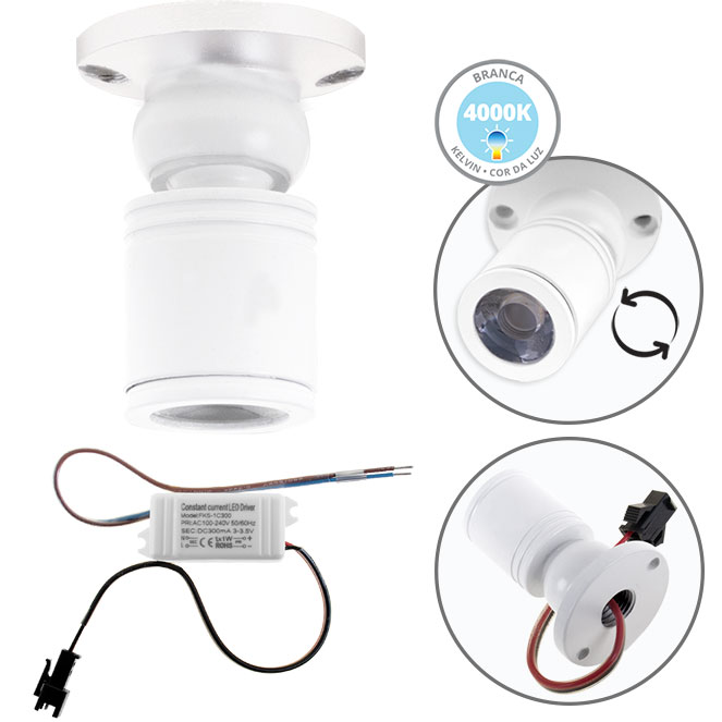 Foco orientável MELVIN redondo 1W LED 70lm 4000K Alt.4xD.3cm Branco