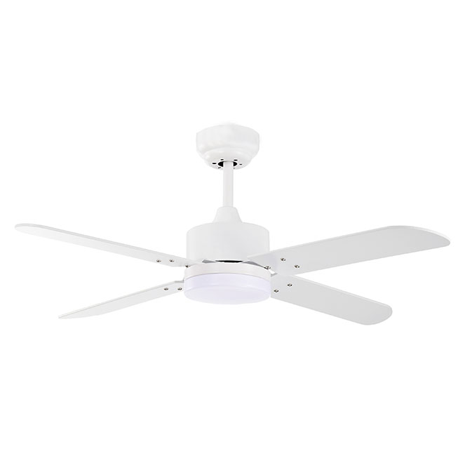 Ventoinha de tecto KENIA branca, 4 palas reversíveis, 18W LED 3000|4000|6500K, Alt.40xD.107cm